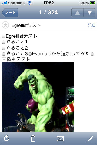 EvernoteでList名、Todoの追加をしても、ちゃんと「Egretlist」側で同期されました。